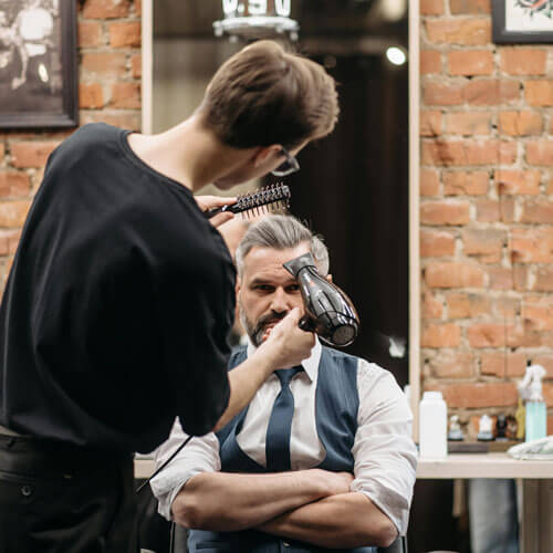(Using premium shampoo & conditioner, blow-dry + styling wax & premium products suitable